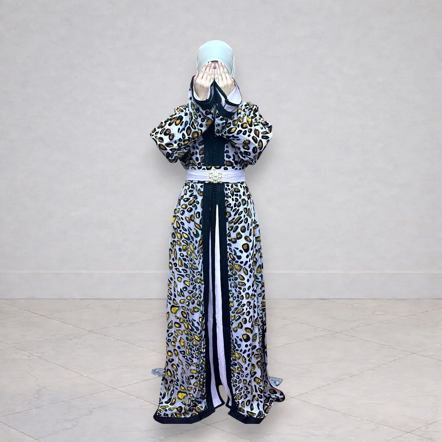 Magnifique takchita en velours avec motif léopard, élégante et originale, parfaite pour se démarquer lors de vos événements 🐆