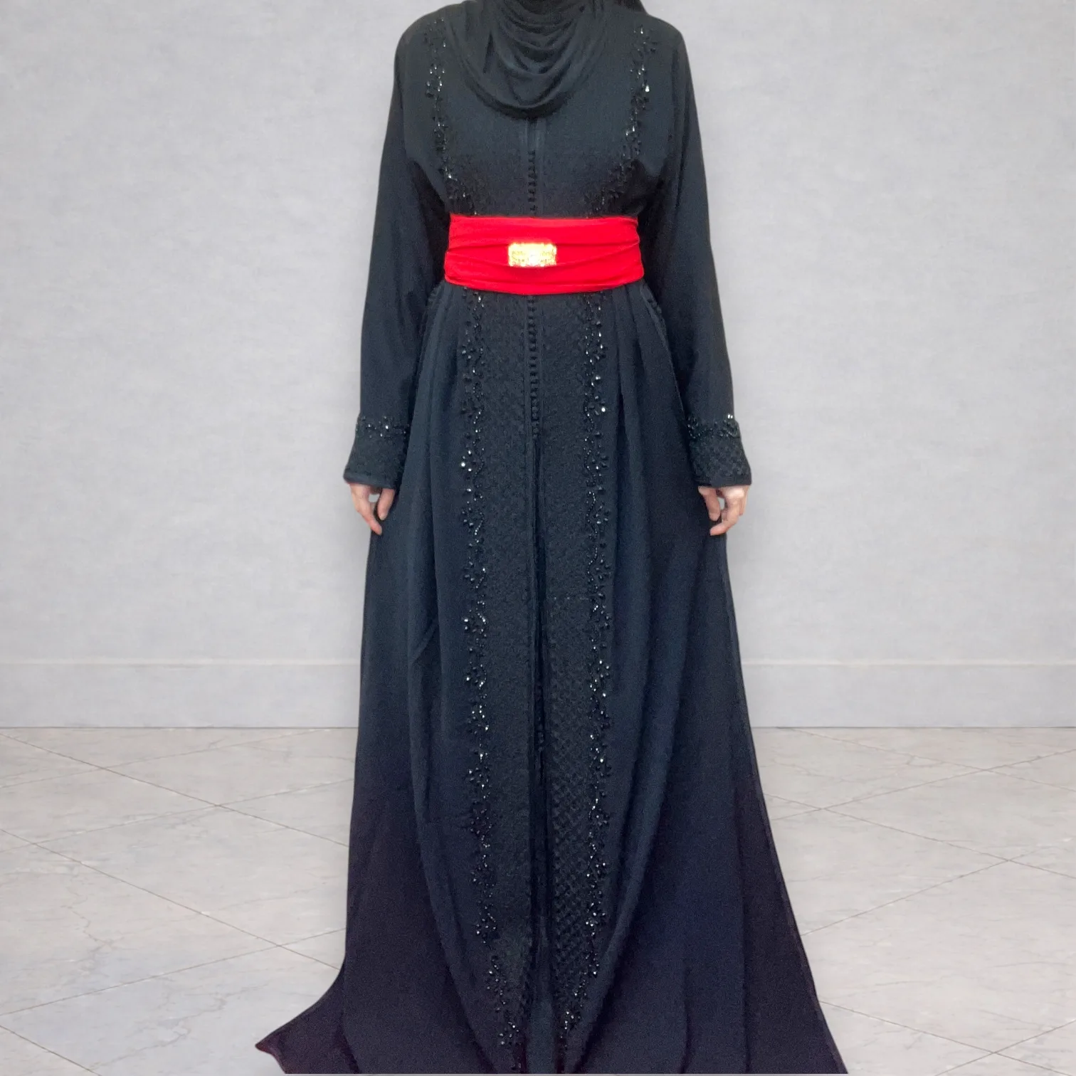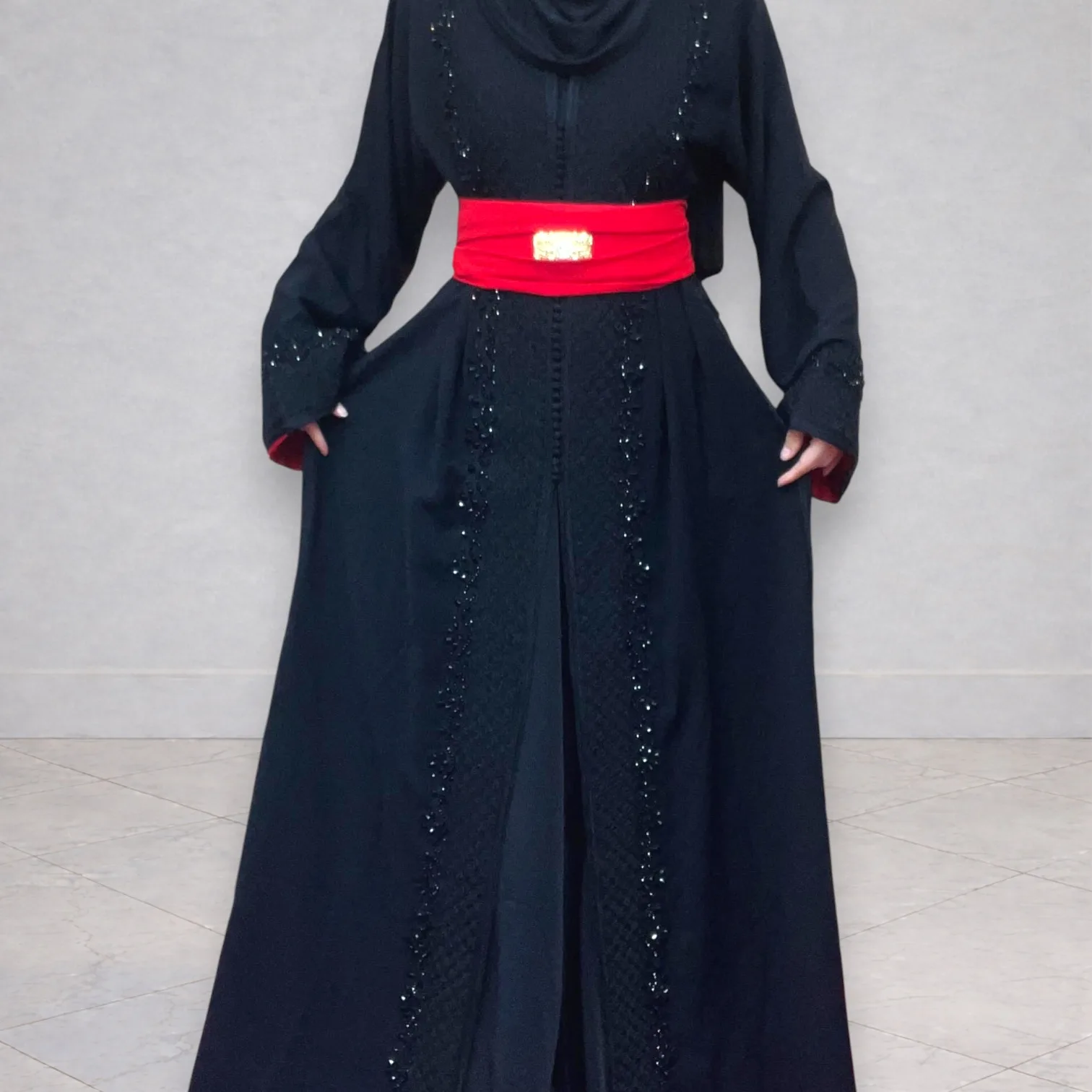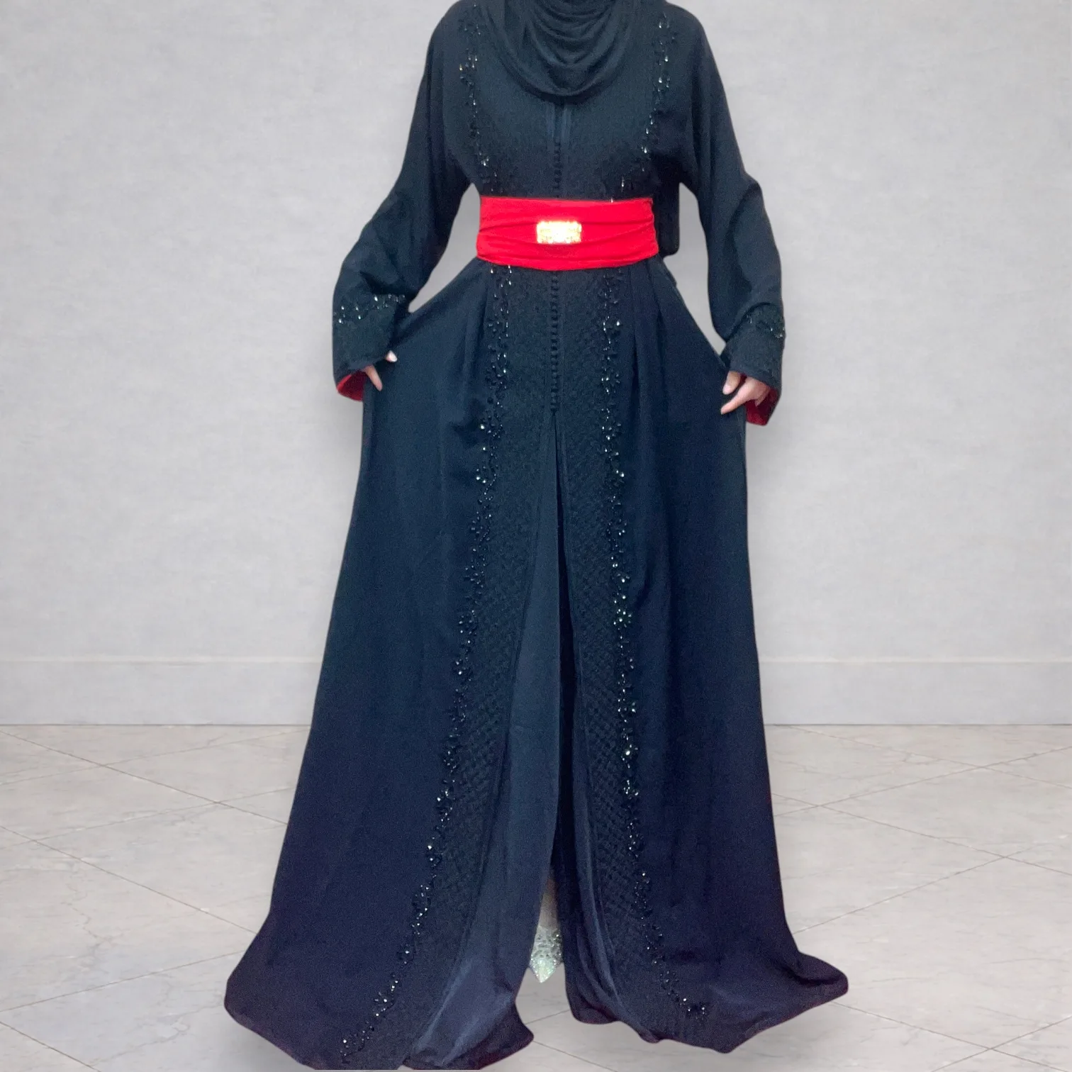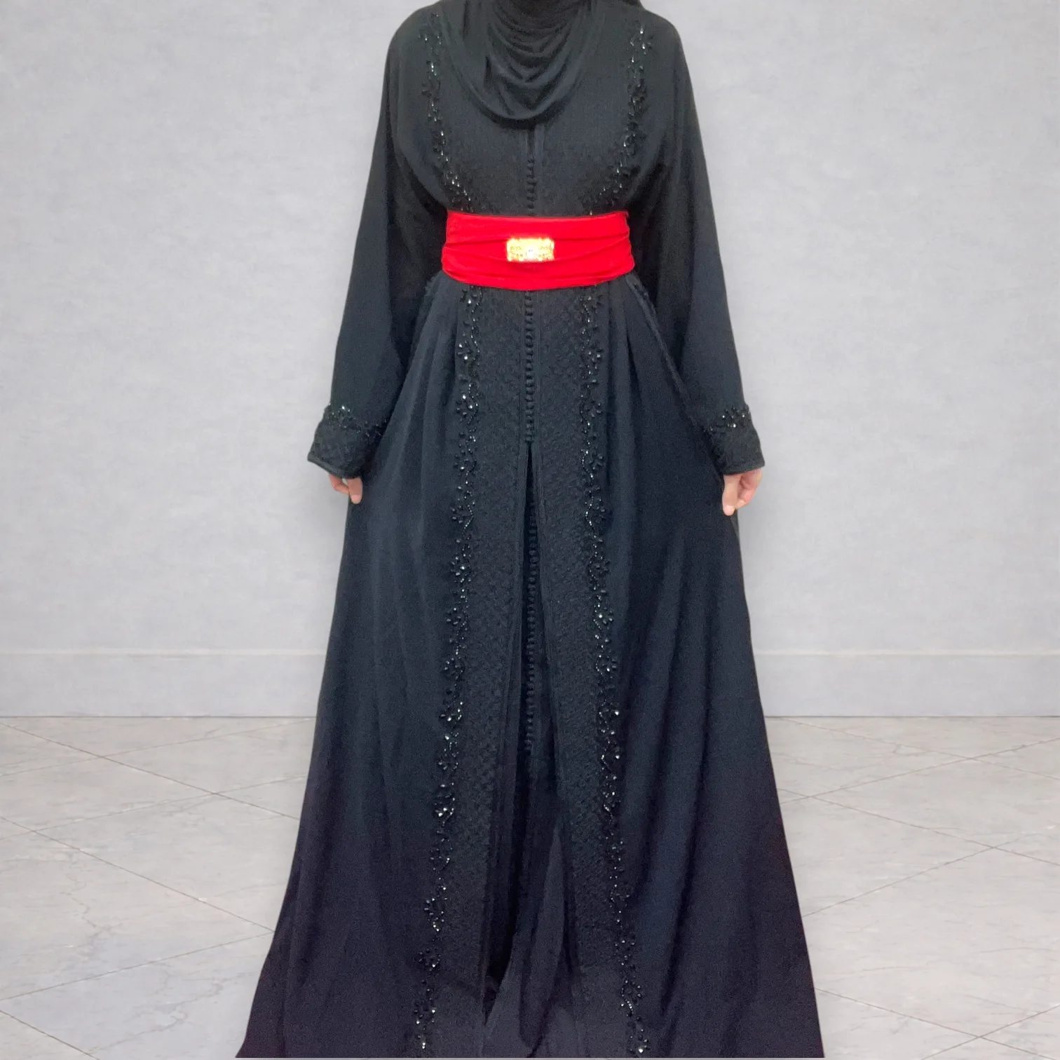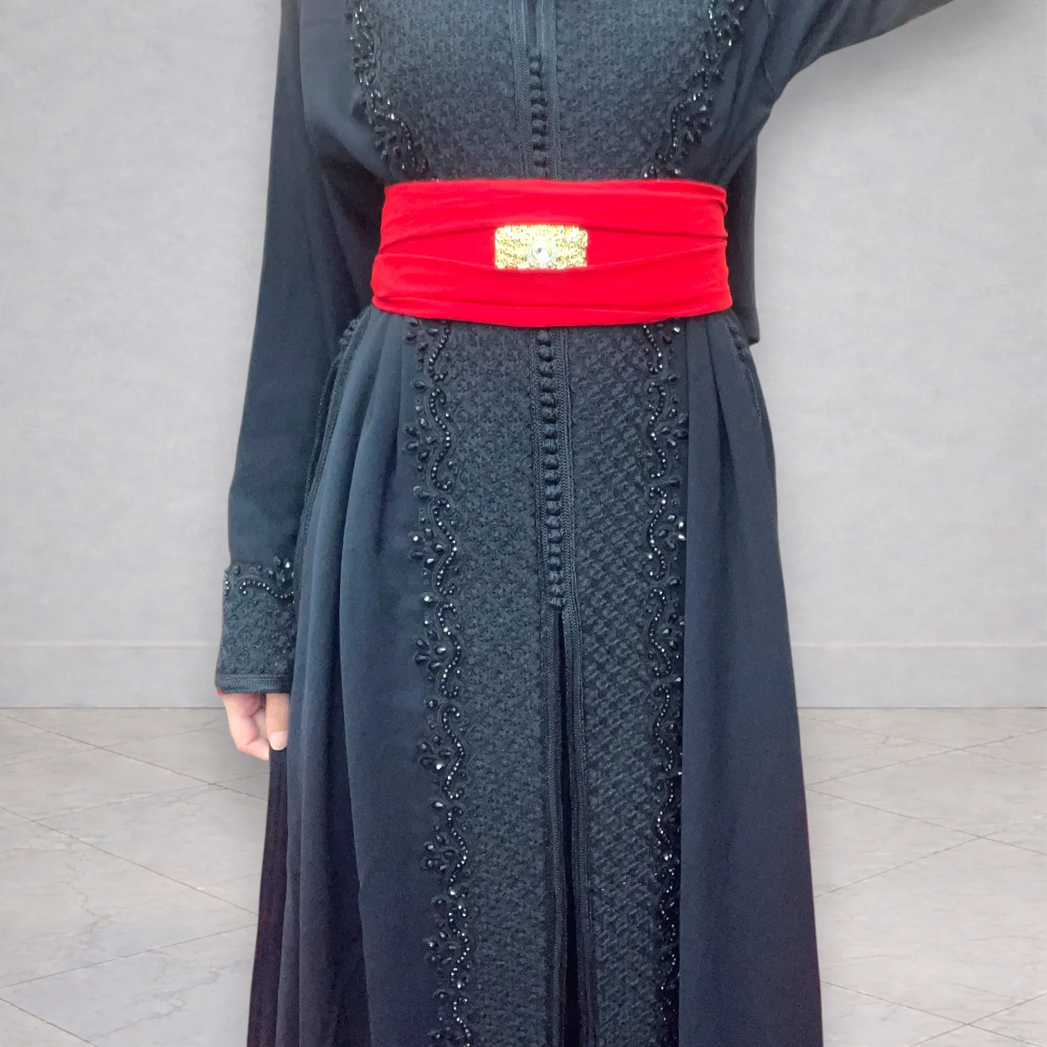 Magnifique takchita noire composée de deux pièces, idéale pour les fêtes, mariages ou occasions spéciales.